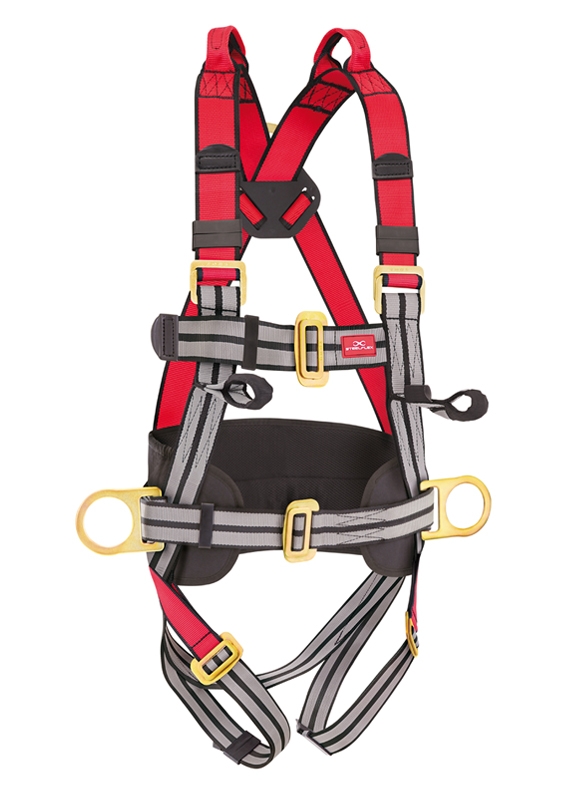 Cinturão de segurança, tipo abdominal e paraquedista, confeccionado em cadarço de poliéster de 45mm de largura, dotado de quatro (4) pontos de ancoragem, sendo dois em aço forjado, tipo argola "D", localizados no dorso e duas argolas laterais na altura da cintura para posicionamento e pontos de ancoragem nos ombros para trabalhos em espaço confinado, acompanhado de faixa lombar e o outro frontal, na altura do peito, confeccionado em cadarço de poliéster, com regulagem nas pernas, troncos e peito, através de fivelas duplas de aço com passantes plásticos para melhor ajuste. PROPÓSITO E APLICAÇÃO: Este equipamento deve ser usado com um sistema individual contra quedas para limitar a queda livre conforme NBR 15635:2010. Os sistemas de detenção devem ser colocados de modo que nenhuma queda livre vertical seja possível. INDICAÇÃO DE USO: O equipamento deve ser usado por uma pessoa treinada e capacitada para o seu uso em segurança, se destina para trabalhos com restrição de movimentação, retenção de queda, posicionamento, suspensão, sustentação em trabalhos realizados em altura. (cod. 819)