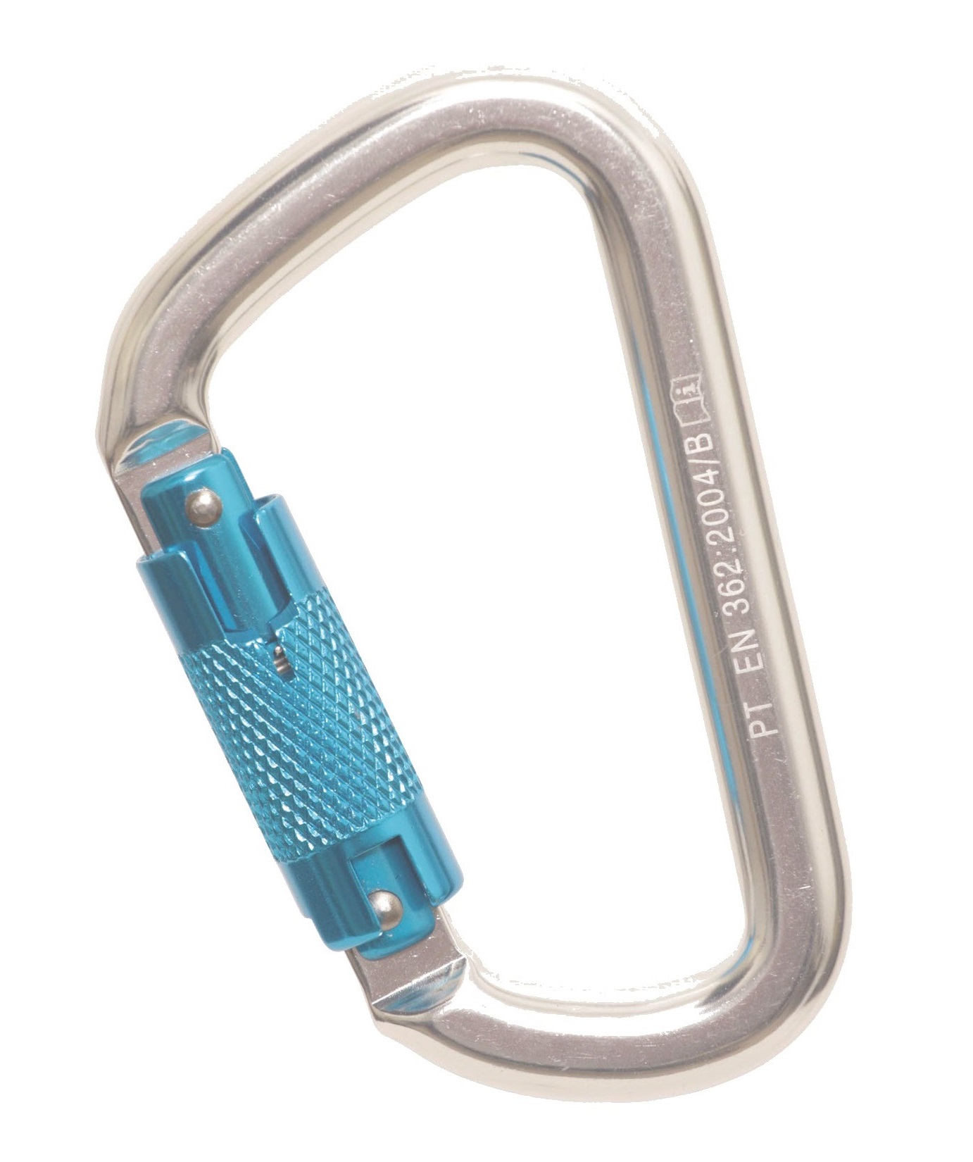 Mosquetão D Tripla Trava alumínio Marca: ULTRA SAFE Código: USM0020 Características Material: alumínio Cor corpo: alumínio Cor gatilho: azul Peso: 96 g Carga de ruptura: 25 kN Tipo de trava: Automático - Tripla trava Certificados e Normas Atendidas: ABNT NBR 15.837:2010 e CE Dimensões Comprimento externo: 113 mm Largura máxima externa: 68 mm Abertura (gatilho/nariz) ø: 22 mm Descritivo • Conector de tripla trava automático; • Sua base mais larga facilita o engate no cinturão e na acomodação de dispositivos; • O formato anatômico facilita o manuseio, propiciando abertura rápida e precisa.