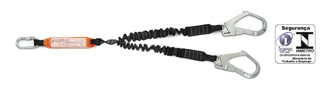 • Confeccionado em fita tubular poliéster preta; • Elástico interno; • 02 conectores dupla trava com abertura de 55 mm; • 01 absorvedor de energia com mosquetão oval. Utilização do produto: Acessório utilizado para proteção contra quedas em movimentações por torres, andaimes, estruturas metálicas, escadas marinheiro, etc. Utiliza-se em conjunto com os cinturões paraquedista. (NBR 14629:2010, NBR 15834:2010 e NBR 15837:2010). O seu sistema de absorvedor de energia possibilita a redução de impactos possíveis sobre o corpo do trabalhador ou sobre o sistema de segurança.