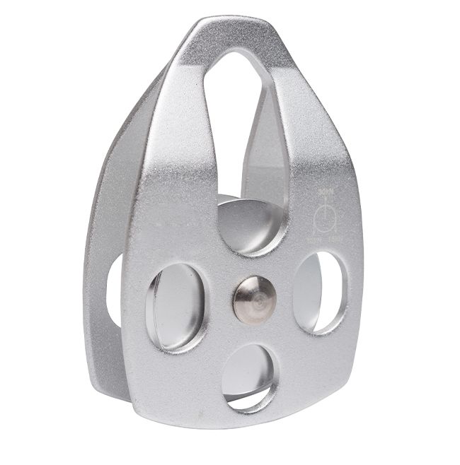 As polias são utilizadas em operações de resgate, movimentação de cargas e espaço confinado. Fabricada em alumínio. Diâmetro máximo da corda: 16mm Peso: 476g Carga máxima de trabalho: 30kN