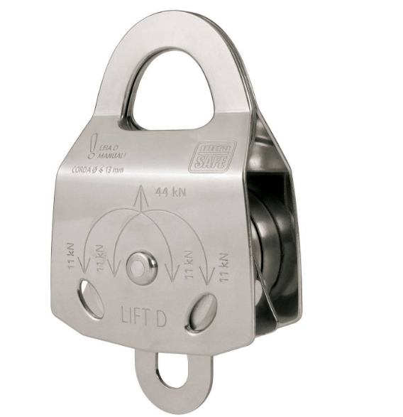 Polia para uso em corda, produzida em placas oscilantes de aço inox, possui formato ideal para instalação de nó auto blocante. Este recurso é recomendado em sistemas de redução durante resgates, içamentos de cargas e espaço confinado. Devido a seu desenho, destrava automaticamente o nó quando este bate na polia e assim permite ter um sistema anti-retorno muito leve Roldana fabricada em Nylon 6, material termoplástico de poliamida com excelentes propriedades mecânicas, elétricas e térmicas que permitem seu uso em industria mecânica, elétrica e química. Possui baixo coeficiente de atrito, isolação elétrica e boa resistência à fadiga e a agentes químicos. Outras vantagens desta roldana: proporciona menor desgaste na corda, não gera corrosão, é mais leve, maior resistência ao atrito, total resistência a salinidade e possui proteção UV Corpo: aço inox Roldana: Nylon 6 Mecanismo interno: mancais auto-lubrificantes Diâmetro da corda: ≤ 13 mm Diâmetro interno da polia: 49 mm Uso: normal ou intenso Uso em alta rotação: NÃO utilizar polias Lift e Roll em altas velocidades