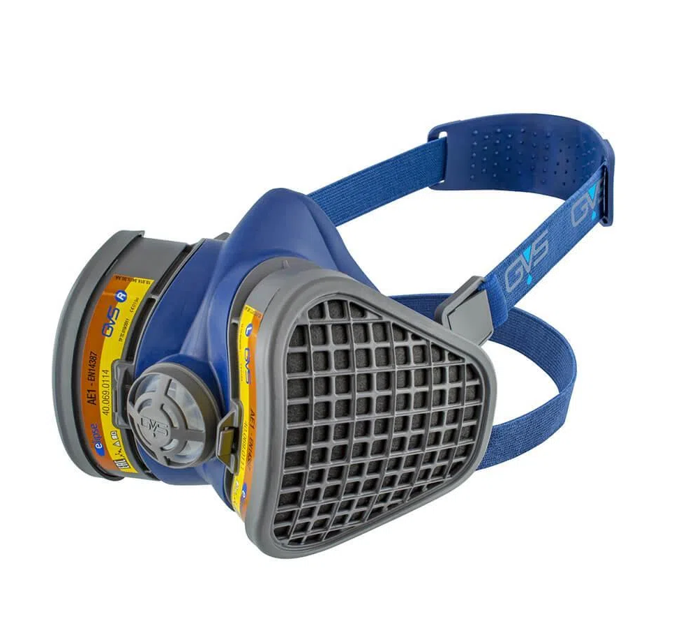 Respirador purificador de ar tipo peça semifacial confeccionado em elastômero termoplástico com borda interna. Nas laterais do corpo da peça, há dois encaixes para os filtros químicos ou combinados, um de cada lado, do mesmo material da peça. No centro de cada um dos encaixes, há abertura onde é fixado dispositivo plástico cinza dotado de 1 válvula de inalação existente na parte traseira dos filtros. O respirador possui, em sua parte central, dispositivo plástico na cor branco leitoso c/ 1 válvula de exalação em sua parte interna e tampa de material plástico cinza com encaixe tipo pressão. Esta tampa possui dois encaixes laterais, um de cada lado, que se ligam a 1 alça lateral de cada filtro. Na outra lateral dos filtros, próxima à borda da peça, há encaixe para dispositivo plástico cinza, c/ 2 duas hastes, por onde passam as pontas de 2 tirantes elásticos ajustáveis: um tirante na parte superior e o outro na parte inferior. No tirante superior, existe suporte para a cabeça. Utilizado com os seguintes filtros: 1) Químicos Classe 1: SPR489 vapores orgânicos, gases e vapores inorgânicos (exceto monóxido de carbono), gases ácidos, amônia e metilamina; SPR513 vapores orgânicos com ponto de ebulição acima de 65 ºC; SPR516 gases ácidos; SPR519 vapores orgânicos e gases ácidos. 2) Combinados (químico classe 1 e para partículas classe P3): SPR492 vapores orgânicos, gases e vapores inorgânicos (exceto monóxido de carbono), gases ácidos, amônia e metilamina e poeiras, névoas, fumos e radionuclídeos (P3); SPR341 (A1P3) vapores orgânicos com ponto de ebulição acima de 65 ºC e poeiras, névoas, fumos e radionuclídeos (P3). Aprovado Para: PROTEÇÃO DAS VIAS RESPIRATÓRIAS DO USUÁRIO CONTRA A INALAÇÃO DE PARTÍCULAS SÓLIDAS, QUANDO UTILIZADO COM FILTROS COMBINADOS, E CONTRA GASES E VAPORES, QUANDO UTILIZADO COM FILTROS QUÍMICOS OU COMBINADOS.